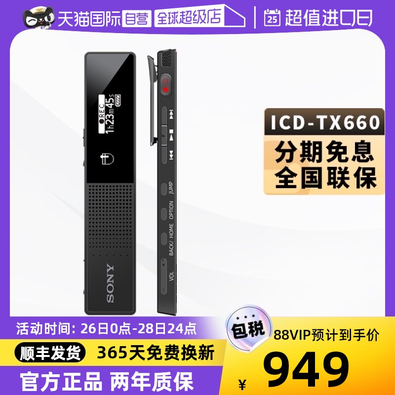 【自营】SONY/索尼录音笔ICD-TX660/TX650专业高清降噪会议录音器