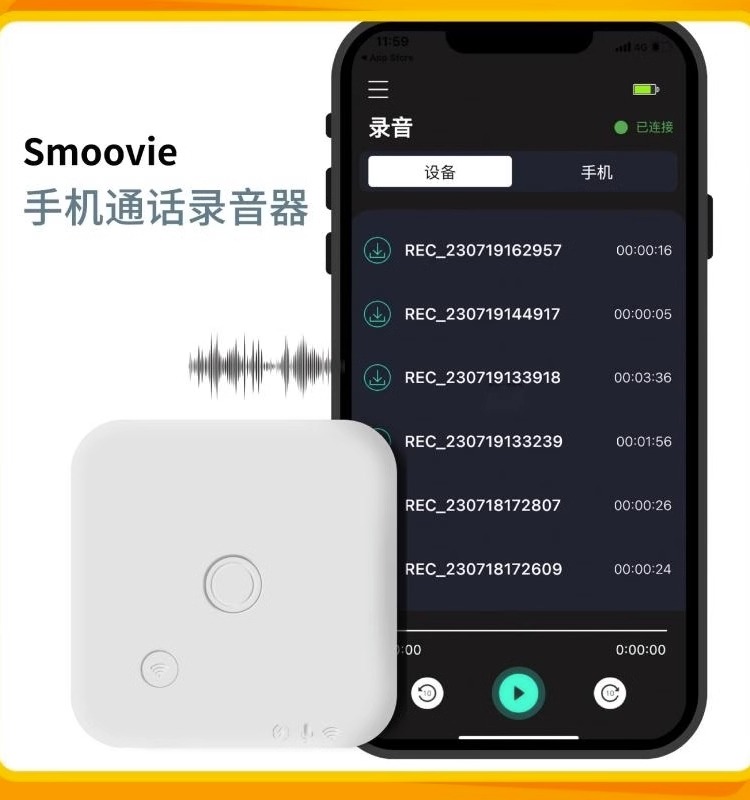 Smoovie手机通话录音器录音笔磁吸轻薄便携式适用苹果iPhone安卓