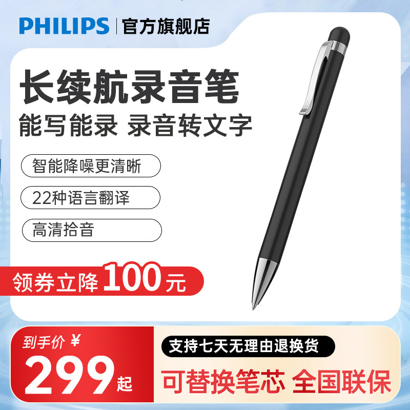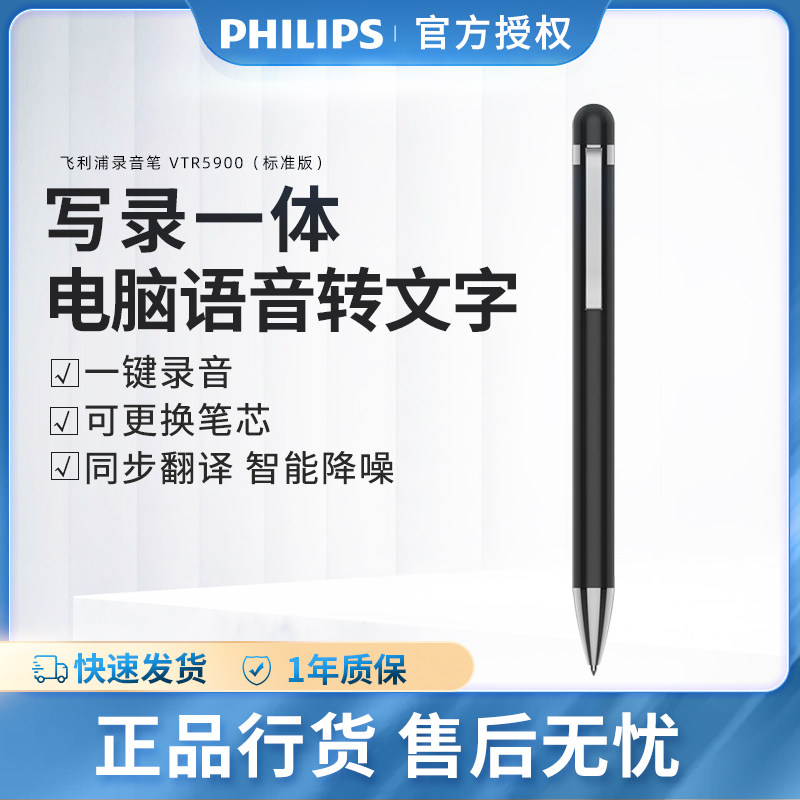 飞利浦笔形录音笔VTR5900电脑语音转文字专业高清降噪一键录音器