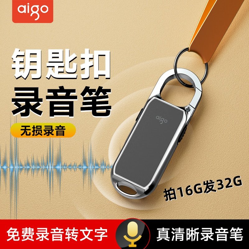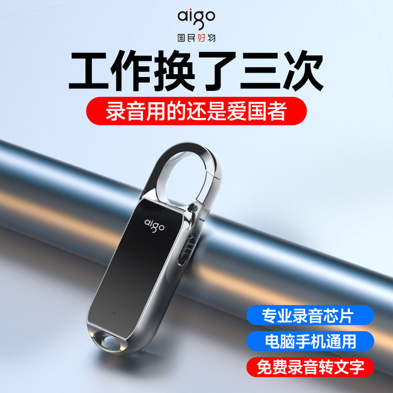 爱国者录音笔随身专业高清降噪钥匙扣录音神器设备可转文字便携式