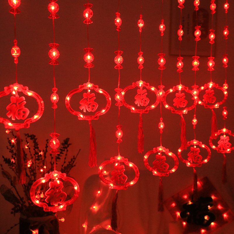 LED中国结红灯笼小彩灯2020鼠年春节新年室内布置装饰彩灯闪灯带