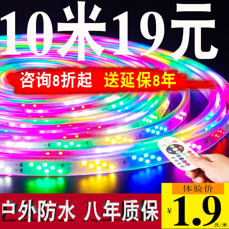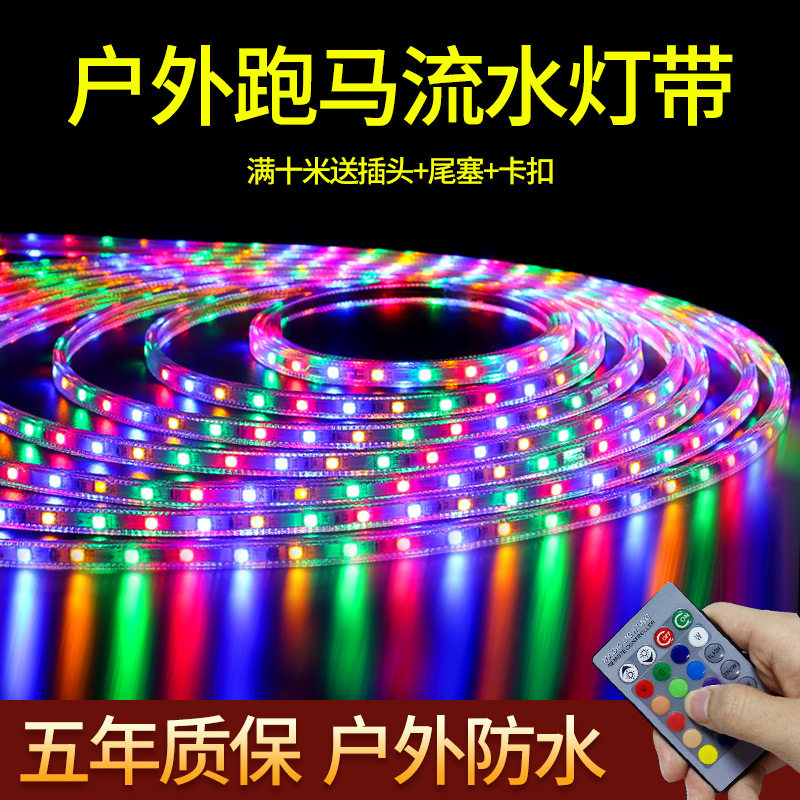 七彩爆闪灯条led防水流水跑马灯变色霓虹220v室外闪光彩灯灯带