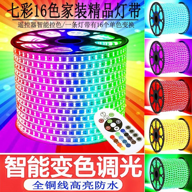 100米led灯带室内七彩变色跑马全彩灯户外防水三色220V吊顶线灯条