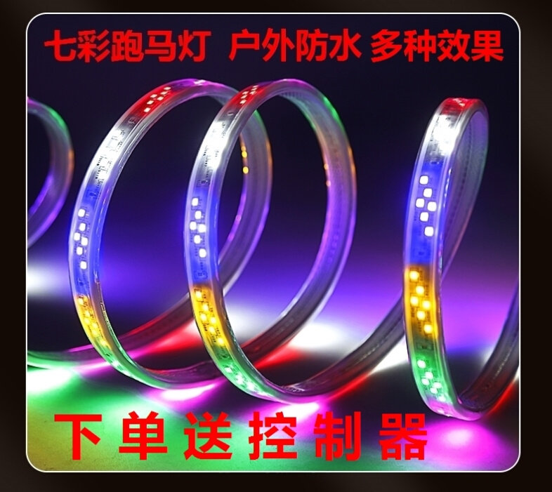 跑马灯led七彩变色户外防水彩灯招牌爆闪光室外霓虹灯带条软灯条