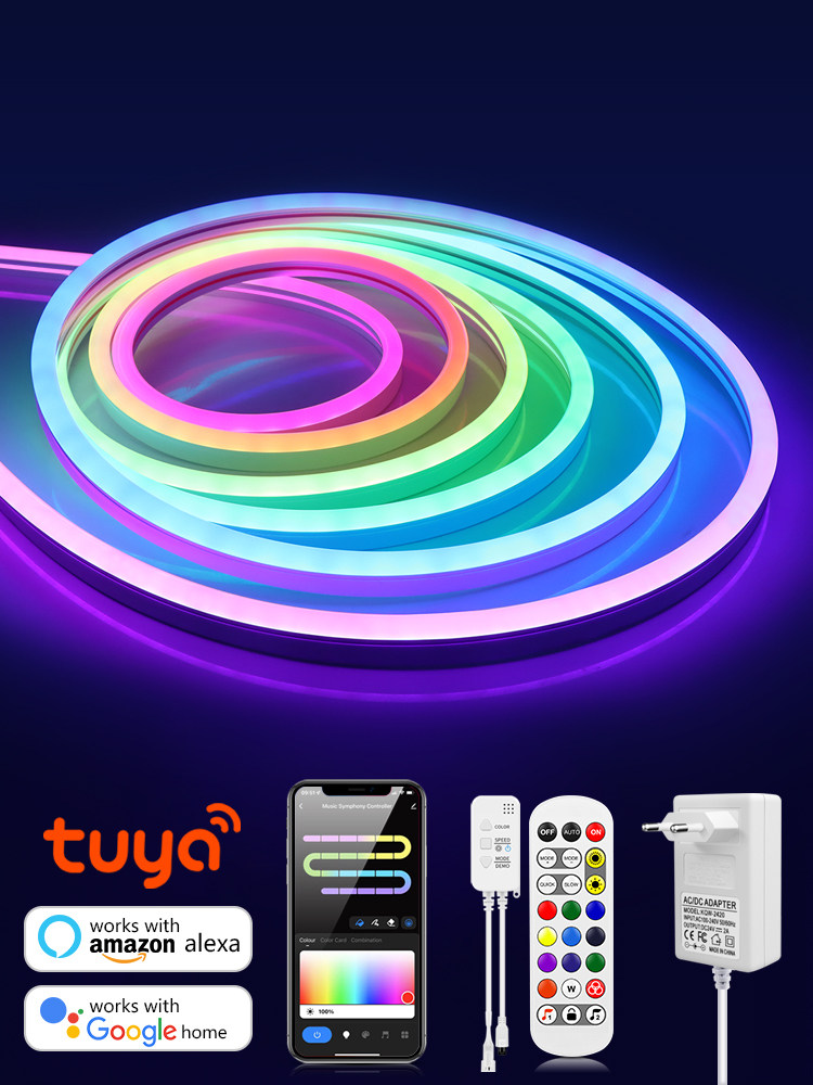 led霓虹柔性软灯带七彩220v变色炫彩氛围灯条户外防水rgb彩灯装饰