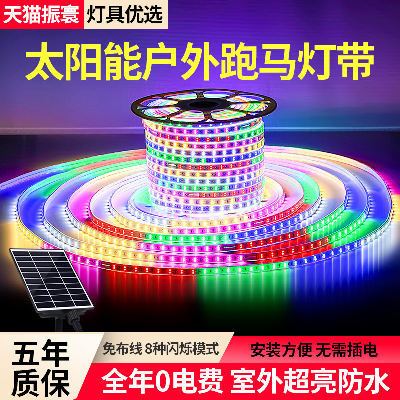 太阳能跑马灯带七彩变色流水彩灯户外防水霓虹灯氛围装饰led灯条