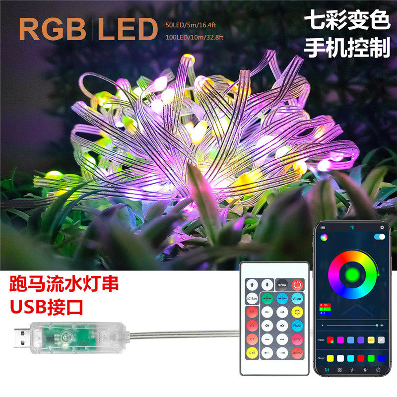 USB遥控圣诞灯串流水彩灯APP智能蓝牙声控灯串七彩变色跑马皮线灯