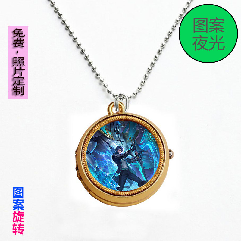 时尚夜光旋转怀表王者荣耀李白诸葛亮儿童项链吊坠男孩创意礼物