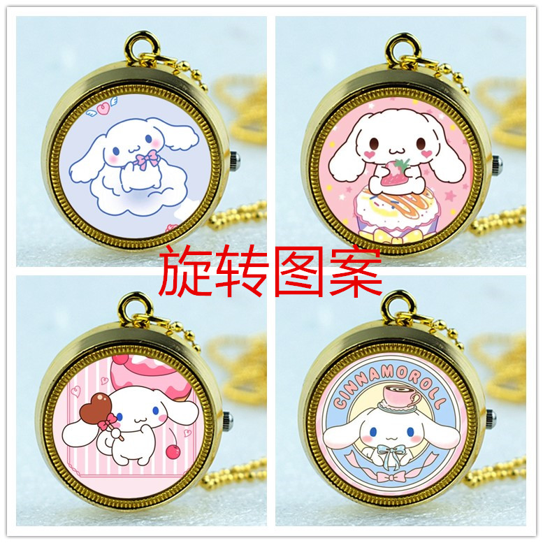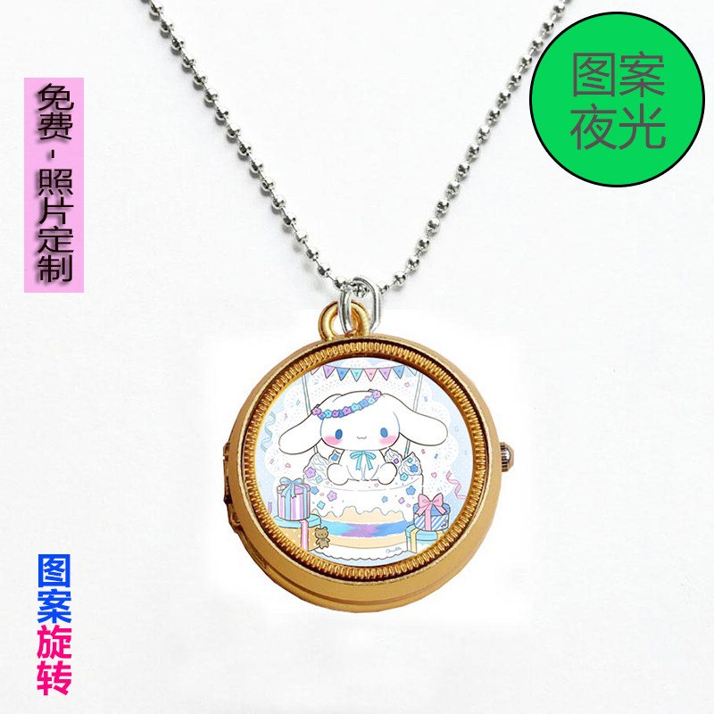 旋转卡通玉桂狗怀表手表项链胸钟表女生女孩子学生儿童礼物时间