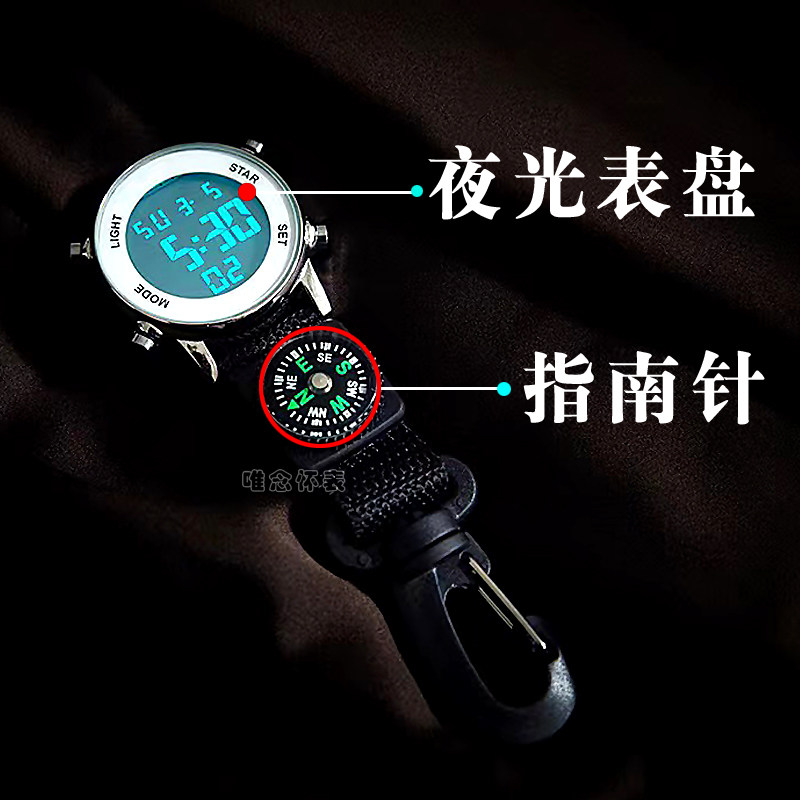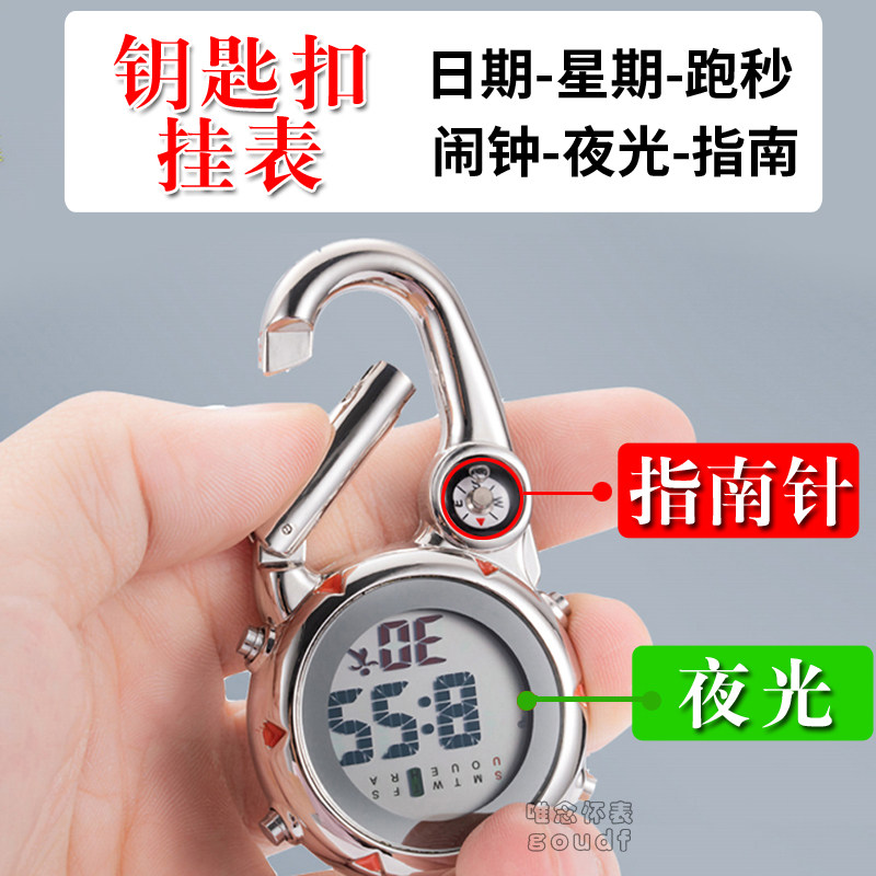 电子数字钥匙扣挂表指南针老人怀表学生考试表夜光防水腰表背包表