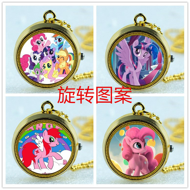 旋转小马宝莉怀表手表项链胸表儿童学生男女礼物翻盖钟表时间定制