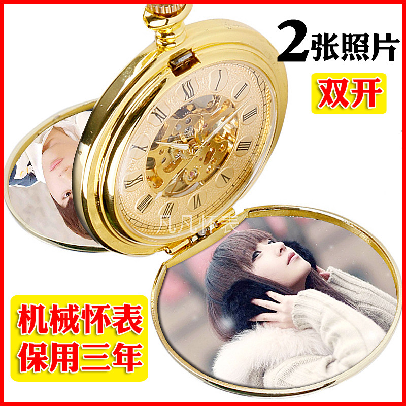 复古翻盖定制照片夜光怀表可放照片带手电筒老人挂表男女学生吊坠