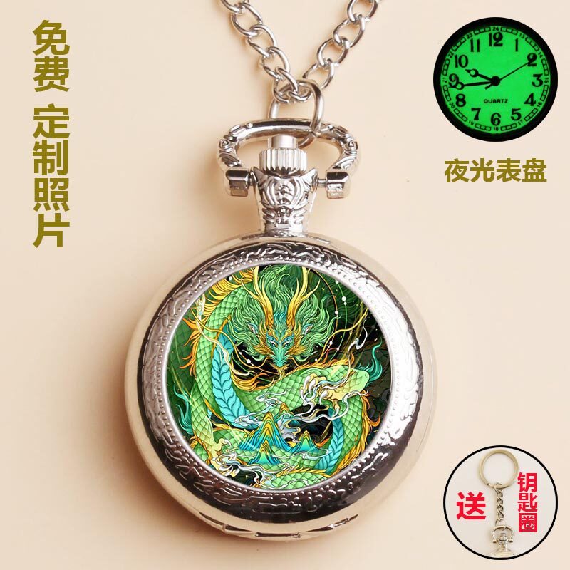 十二生肖怀表复古夜光石英表项链挂表龙蛇虎兔鼠牛定制照片礼物表