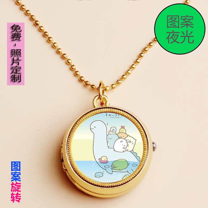 可爱卡通角落生物怀表项链旋转翻盖男女学生情侣手表挂表礼物定制