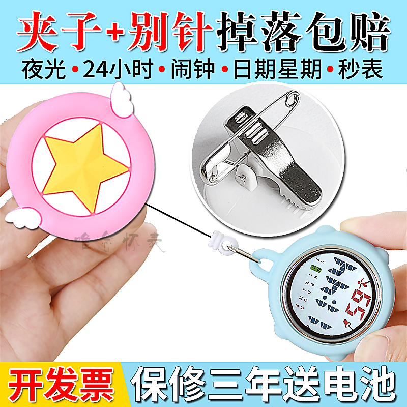 可拉伸缩护士表胸表电子数字医用挂表男女考试表夜光夹子别针怀表