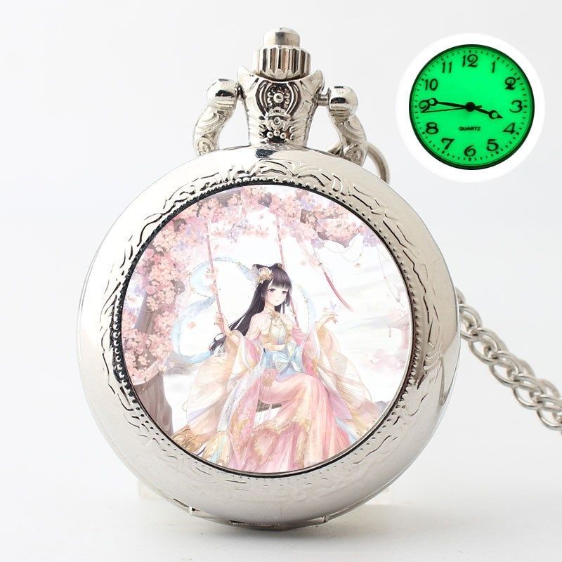 夜光儿童怀表女孩小学生时装百搭挂链表动漫卡通唯美古风儿童怀表
