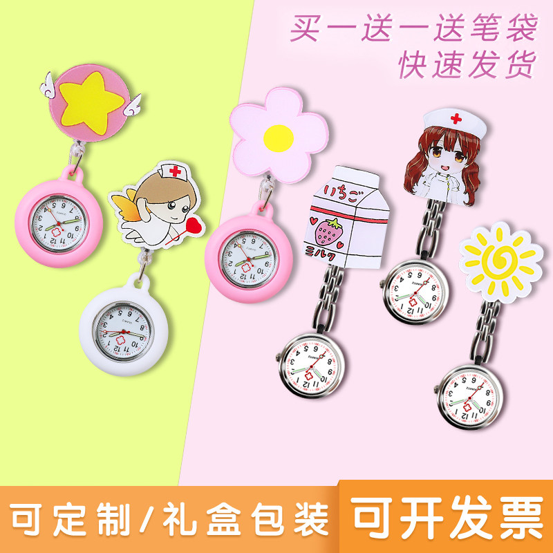 卡通夜光护士表女学生护士挂表笑脸胸表可爱夹子款医生用怀表数字