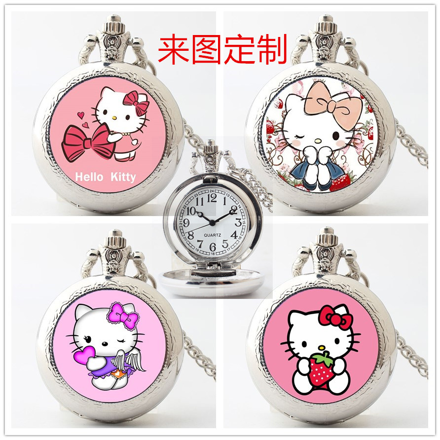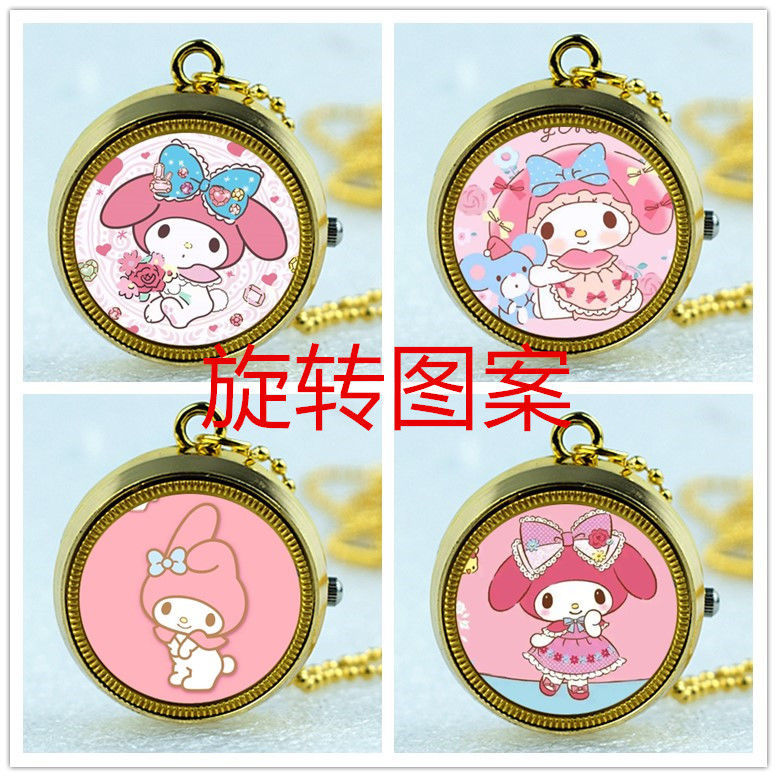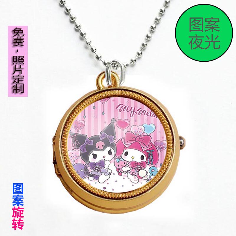 卡通美乐蒂儿童怀表复古翻盖可旋转挂表学生创意礼物项链表女可爱