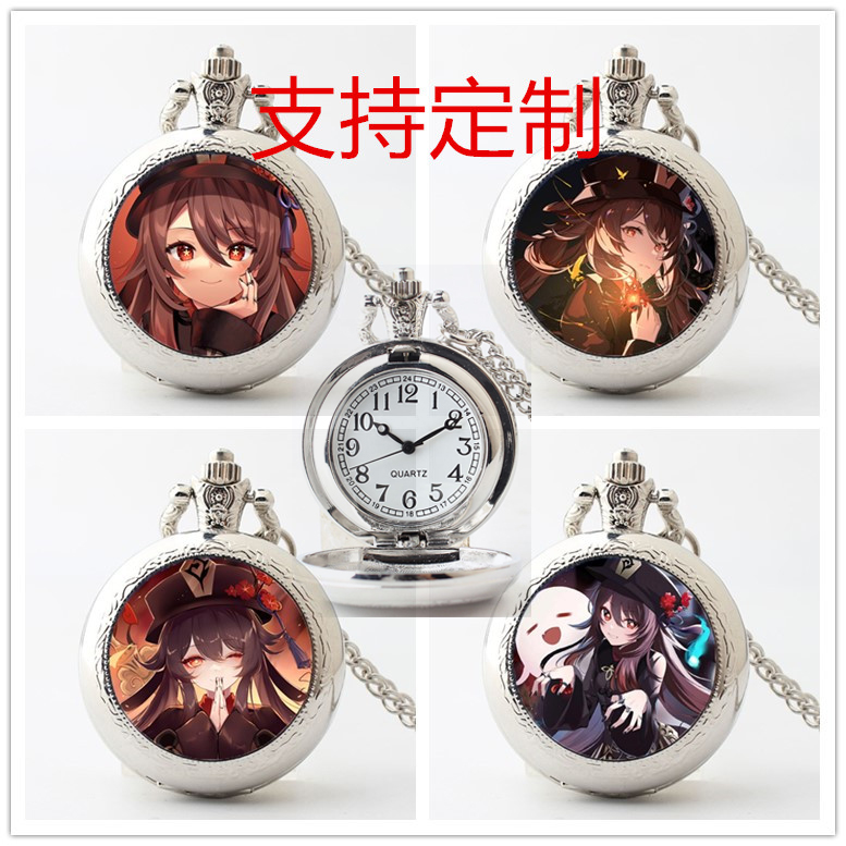 原神胡桃怀表手表项链挂表中小学生男女生翻盖复古毛衣链电子