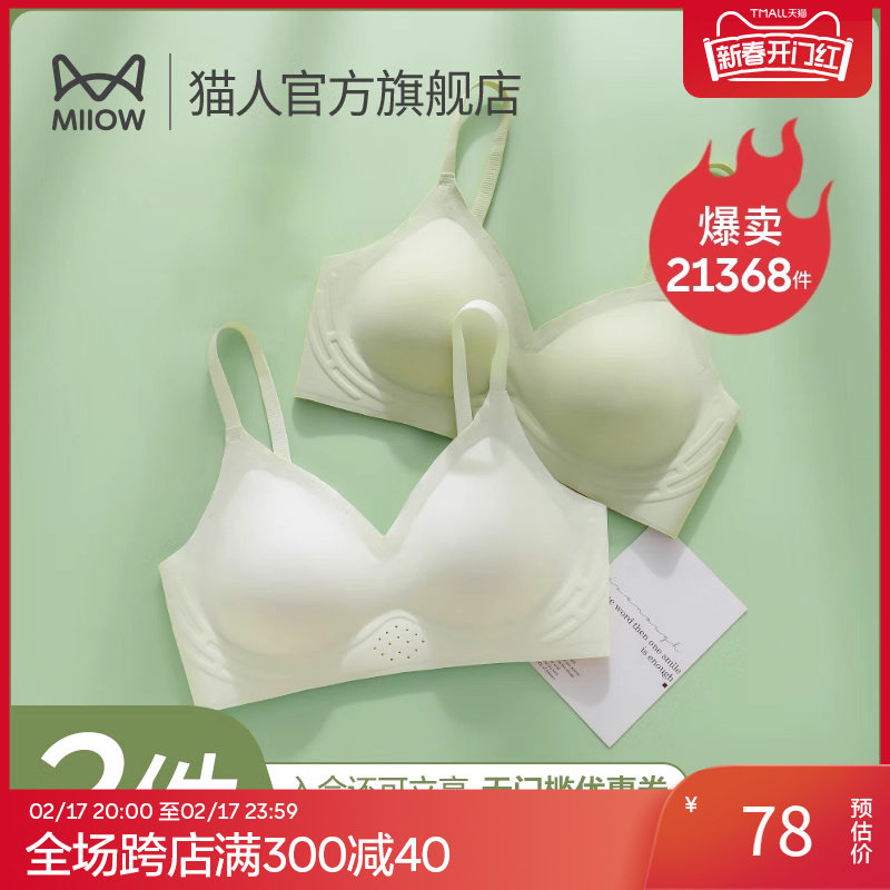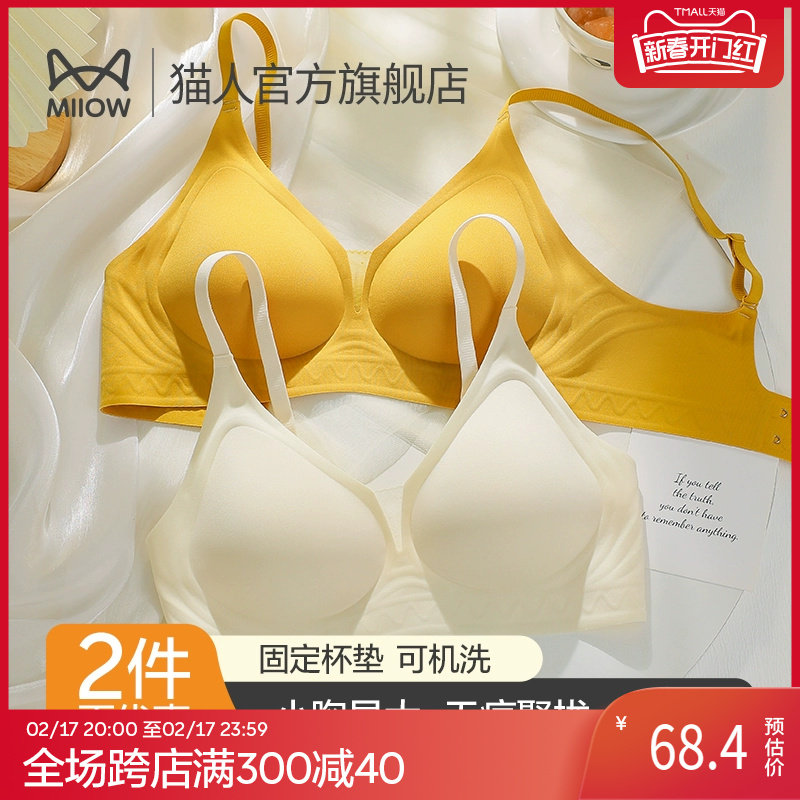 猫人内衣女小胸聚拢显大无痕软支撑收副乳防下垂性感文胸秋冬胸罩