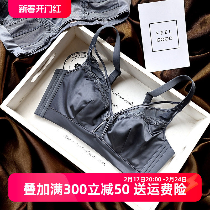 法式缎面小胸聚拢显大内衣少女无钢圈性感纯欲蕾丝舒适文胸罩套装