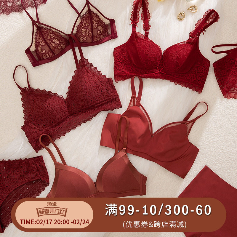 本命年内衣女红色龙年转运小胸聚拢性感无钢圈结婚新娘文胸罩套装