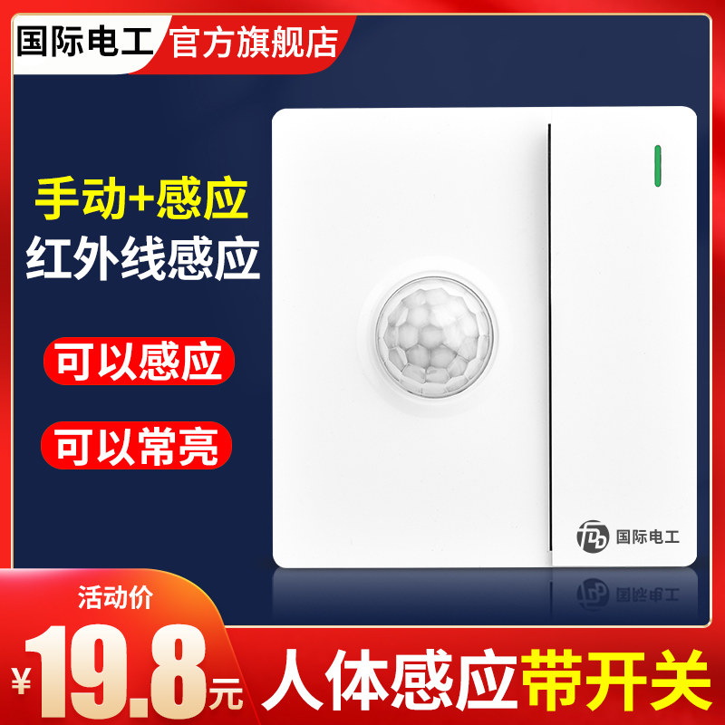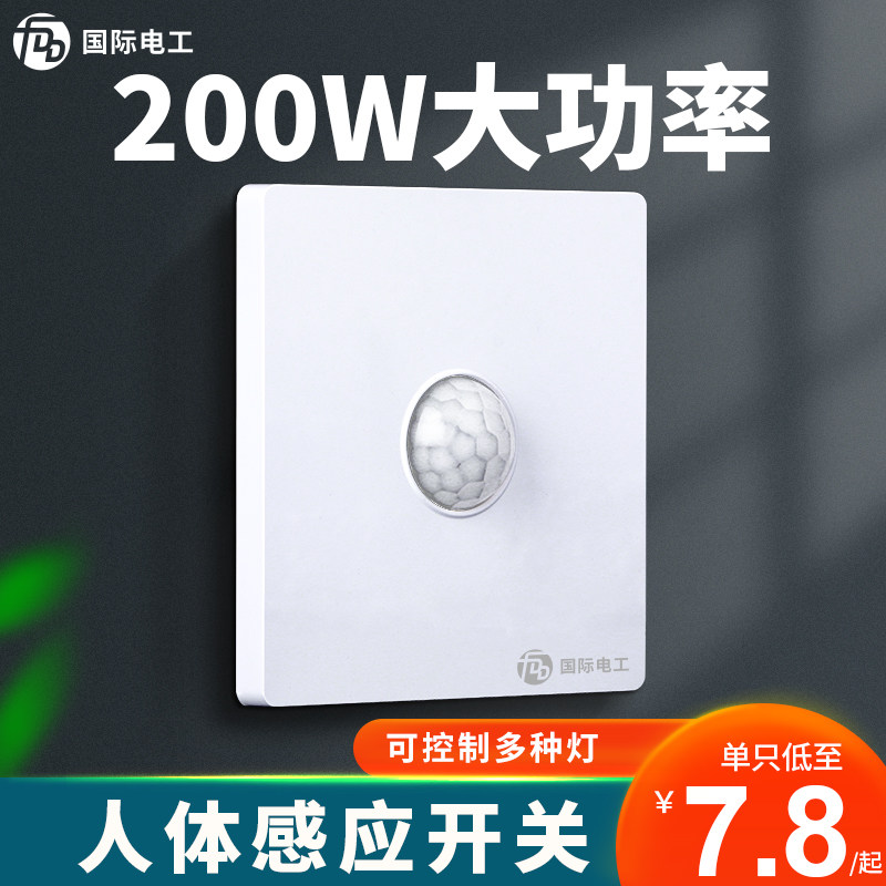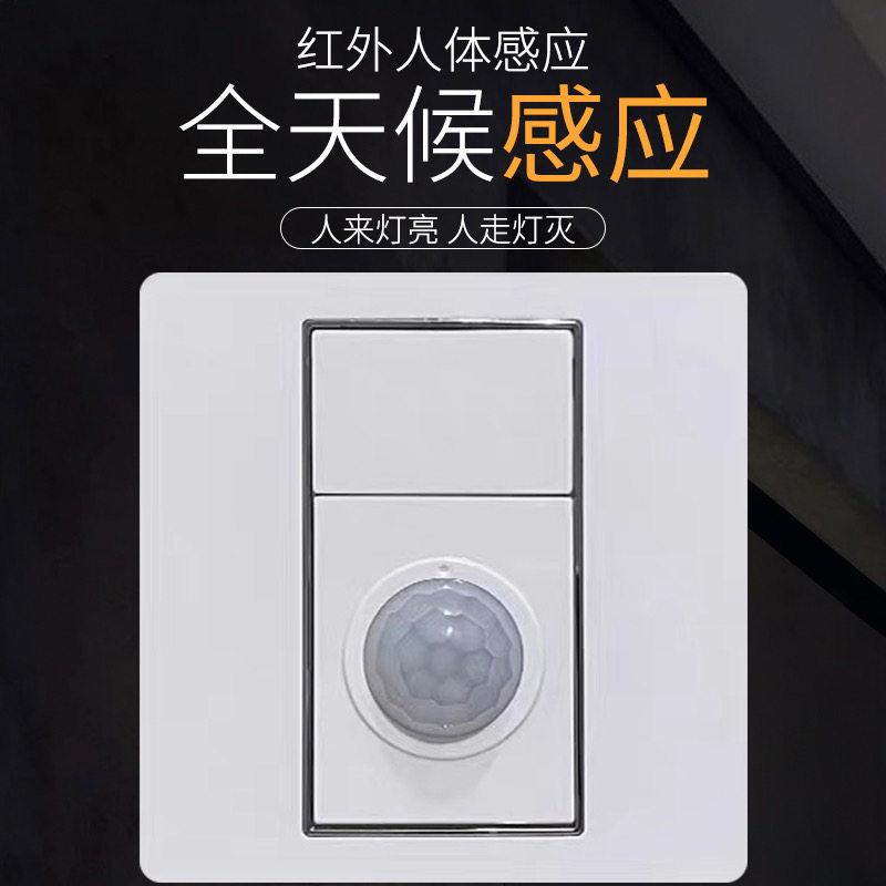 86型感应加开关家用楼道过道门厅玄关220V红外线人体感应开关面板
