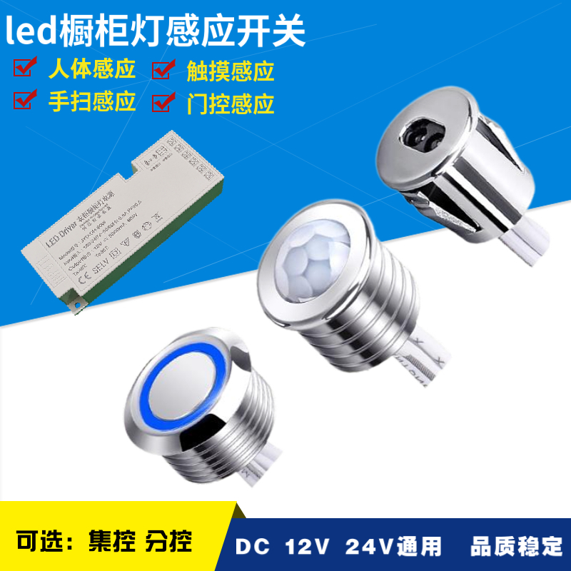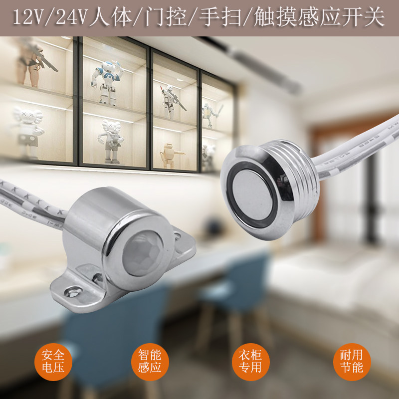 无线集控感应开关人体触摸感应手扫单门控橱柜电源专用低压12V24V