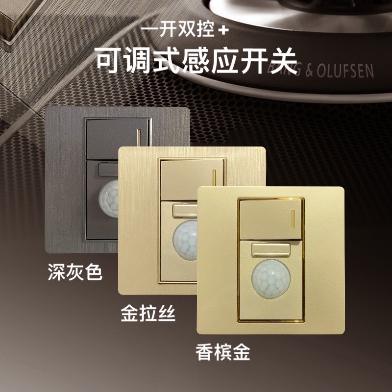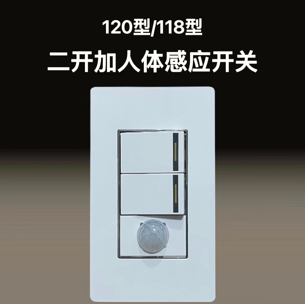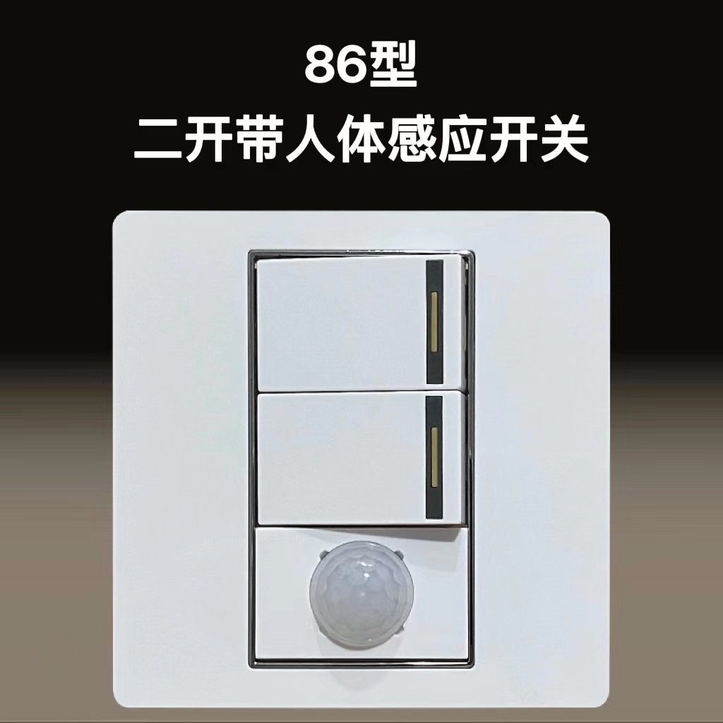 86型一开双控加人体感应开关带光控红外线感应带开关智能延时面板