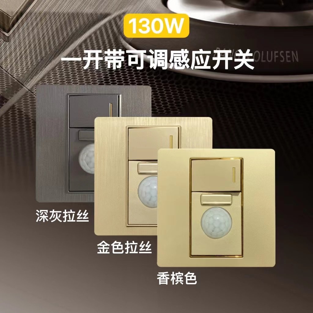 86型一开双控加100W可调式感应开关多种颜色可选光控可调延时可调