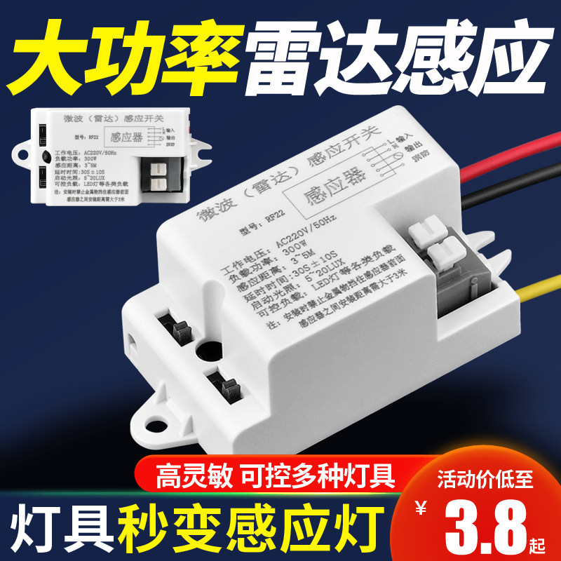 雷达感应开关过道自动微波感应器220v楼道声控智能人体感应灯模块