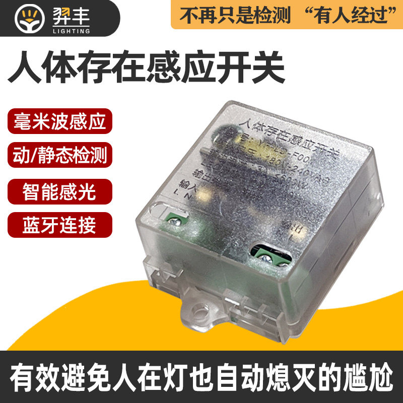 嵌入式人体存在感应器220V楼梯道灯不灭5.8G智能微动雷达感应开关