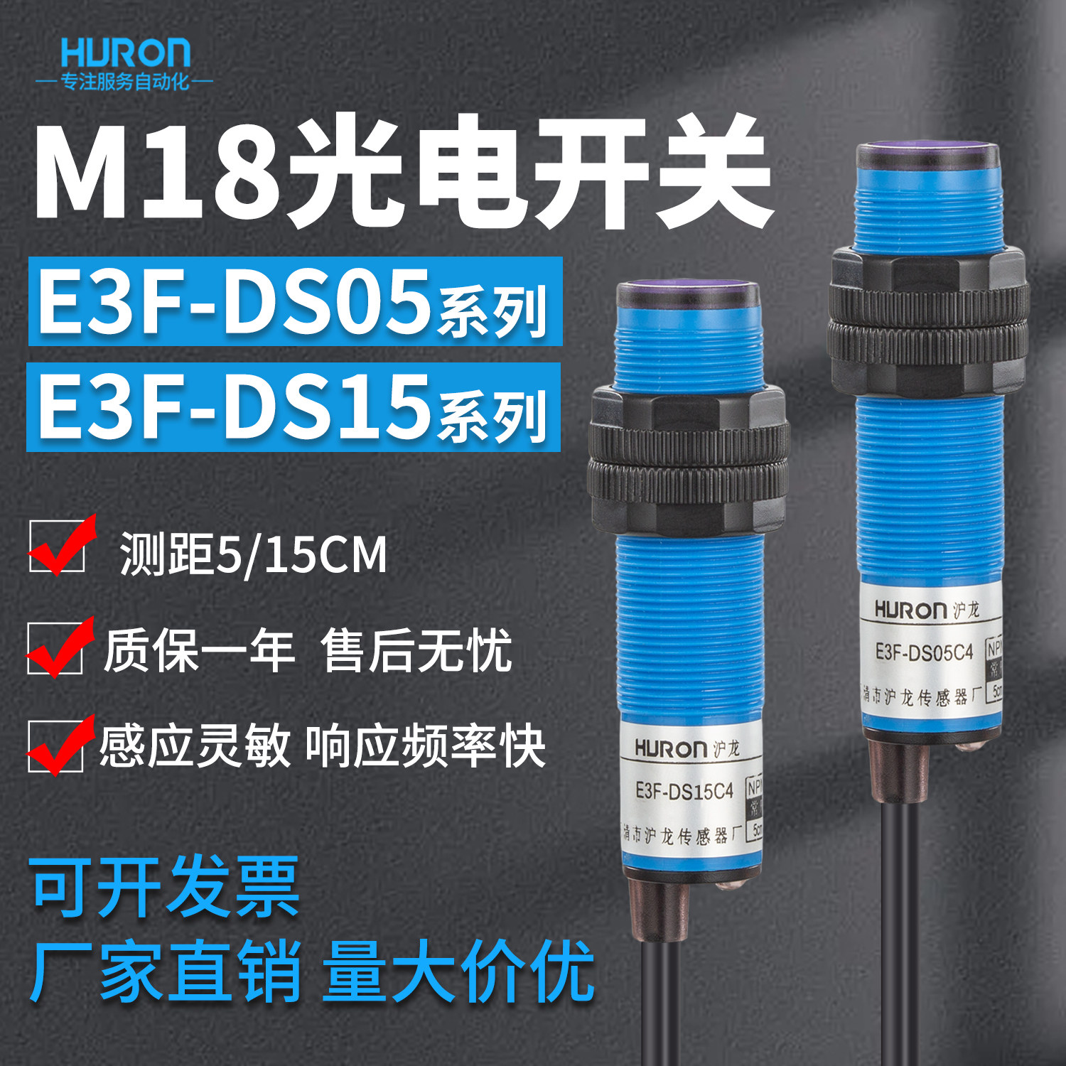 沪龙漫反射光电开关e3f-ds05/15c4红外感应npn常开闭pnp光电开关