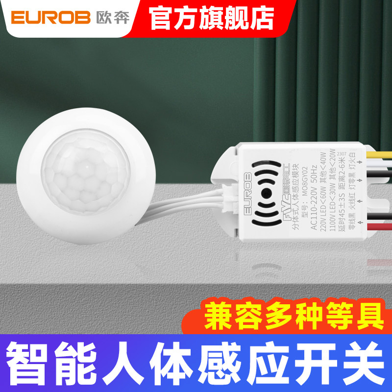 220v红外线人体感应器开关小头模块嵌暗装探头传楼道智能延时光声