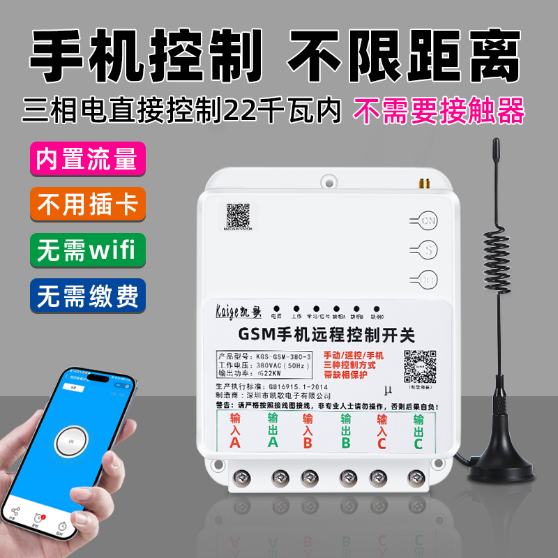 凯歌手机智能遥控开关4G信号220V远程无线控制器380V水泵路灯电源