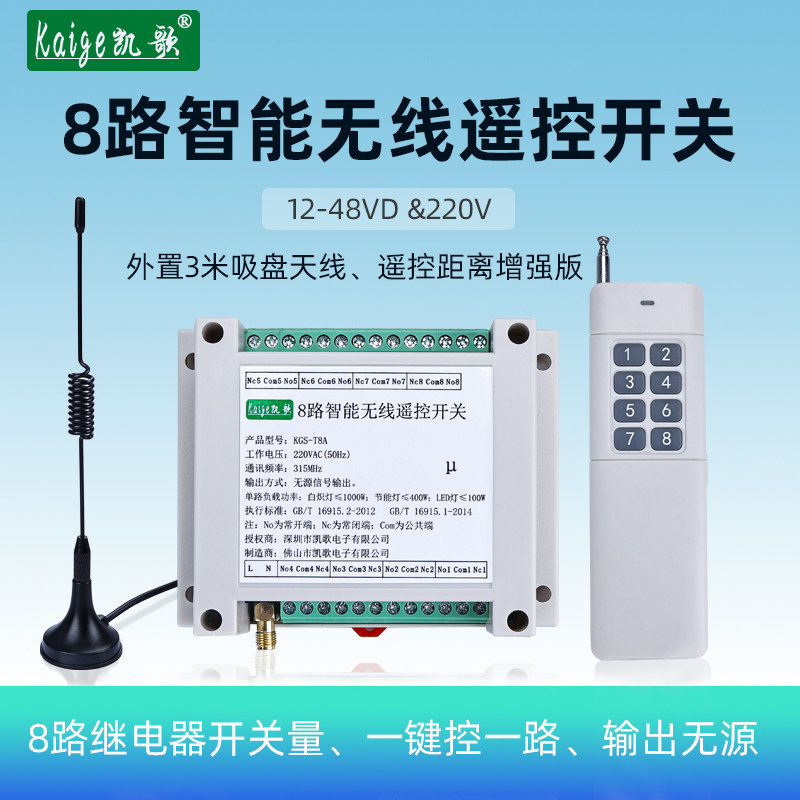 8路遥控开关无线远程控制配电箱遥控器12V24V48V220V八路通断电器