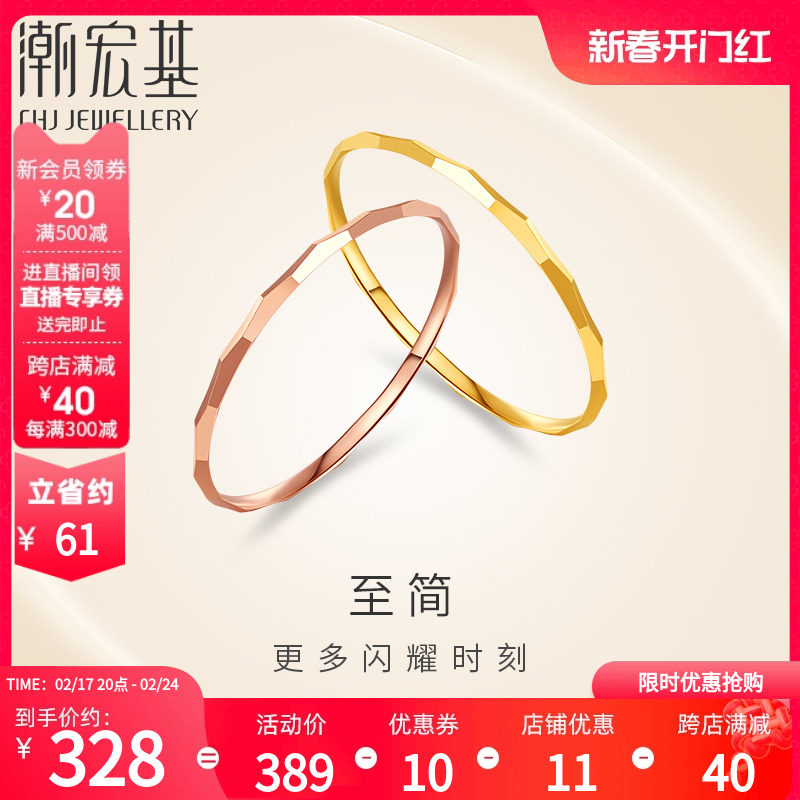 潮宏基至简18K金戒指红黄彩金经典素圈指环尾戒手饰女送女友礼物