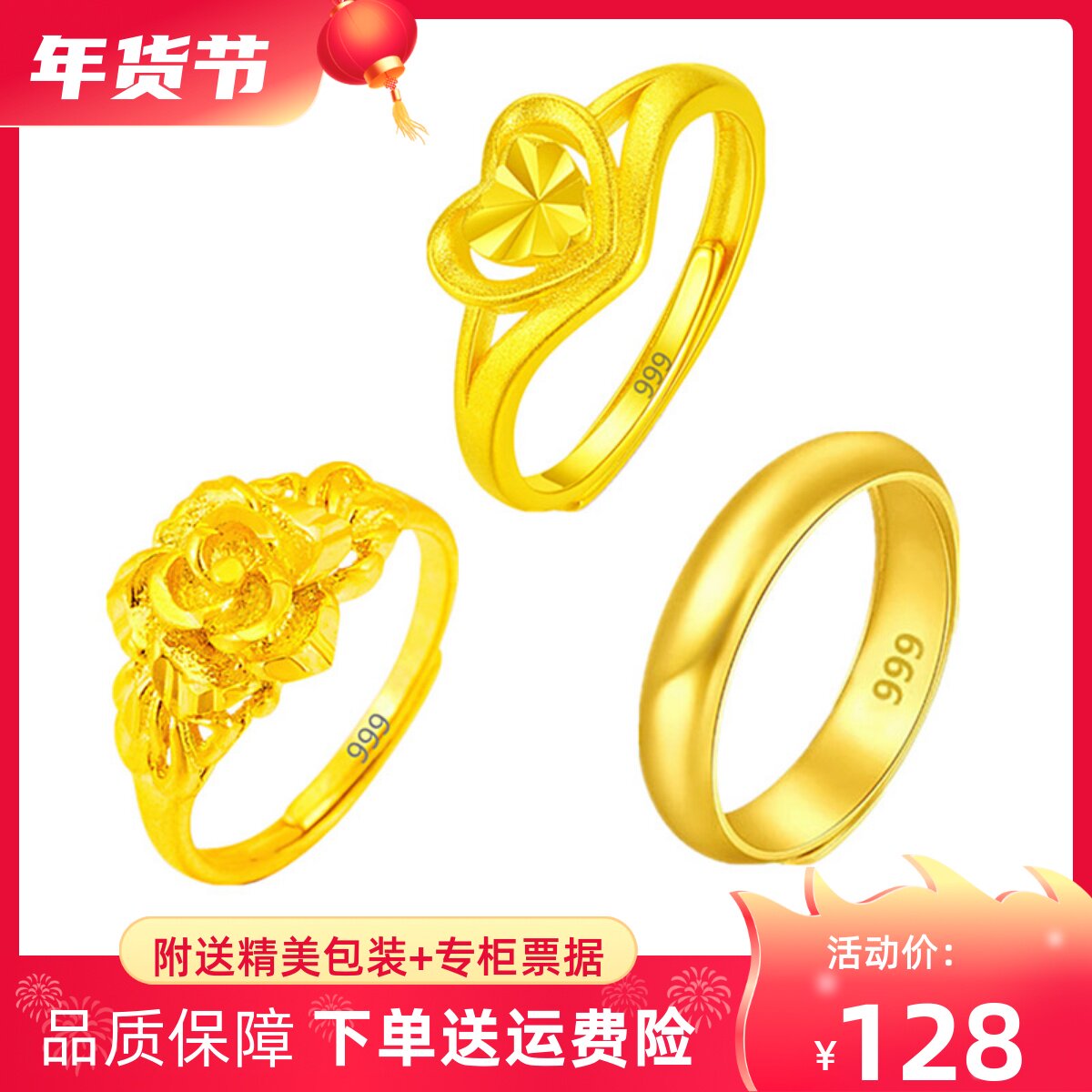 黄金戒指男女999足金成色活口戒子开口素圈24K金指环送女友送妈妈