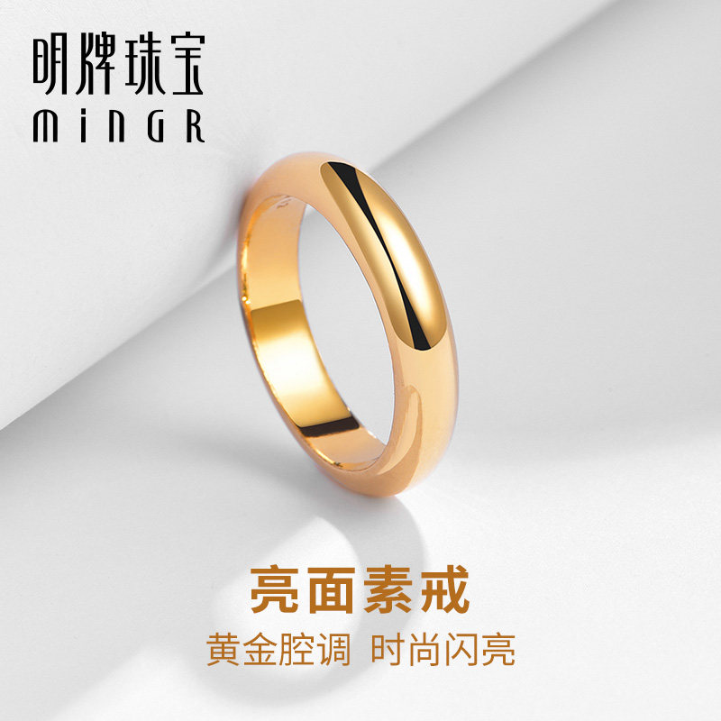 潮宏基回潮足金戒指黄金婚戒素圈光面时尚CNC婚嫁三金女礼物 计价