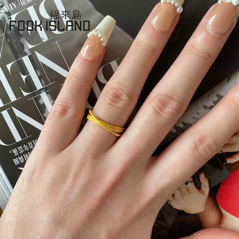 福来岛黄金戒指INS风星轨足金999手饰古法金时尚通勤女士计价首饰
