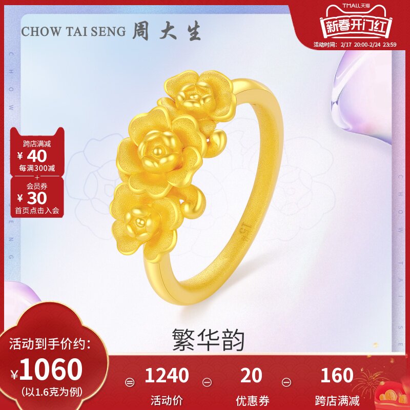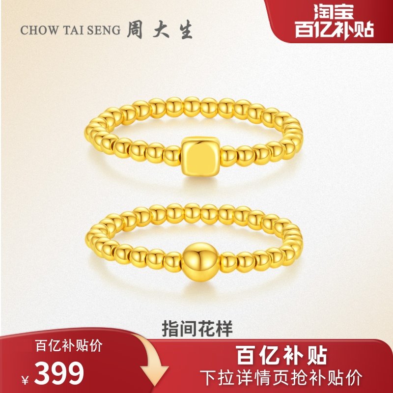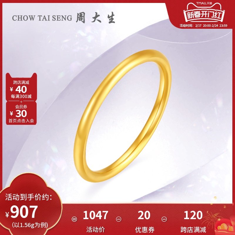 周大生黄金戒指足金指环女固口素圈5G蜂巢送闺蜜生日礼物送女友