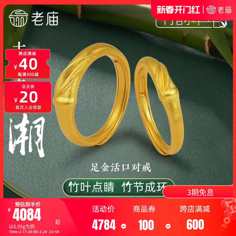 明牌珠宝黄金戒指 古法素圈平安无事足金999对戒小红书 AFM0156