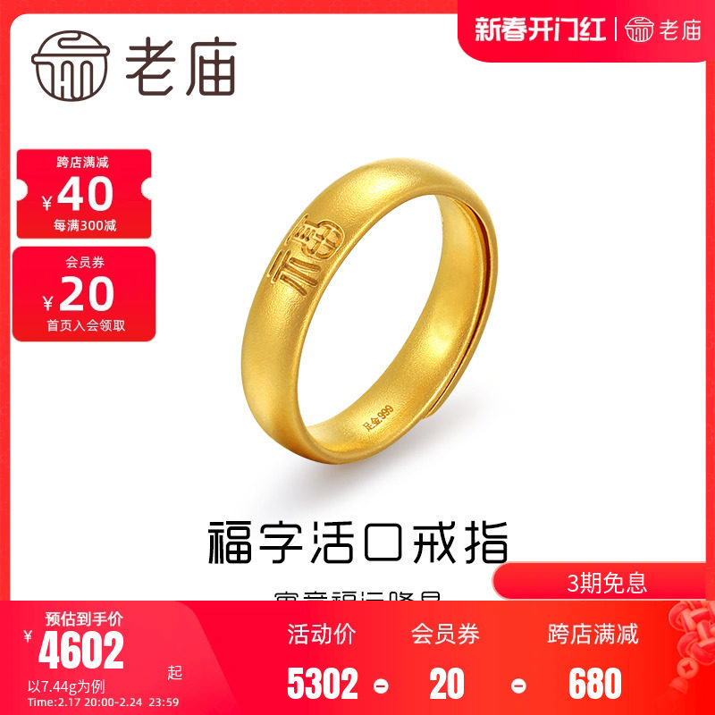 老庙黄金足金999龙腾四海拱形戒指生肖龙老板方戒男士戒指送礼物
