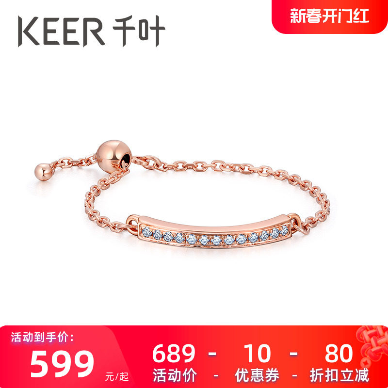 千叶珠宝18k金玫瑰金戒指女软戒可调钻石珍珠彩金轻法式-珠链戒
