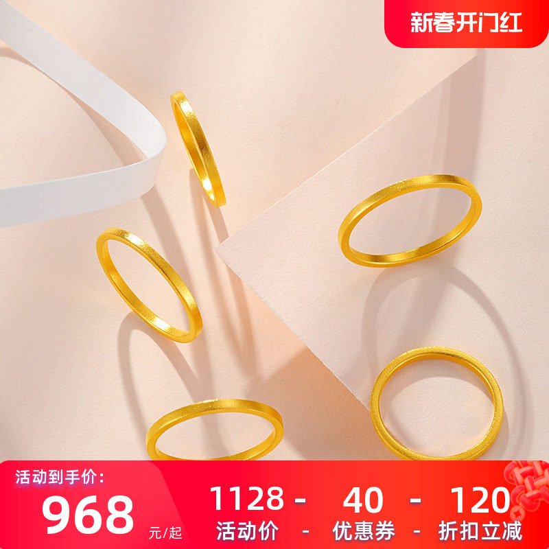 千叶珠宝黄金足金戒指婚戒情侣戒指简约百搭素圈结婚男女计价YS