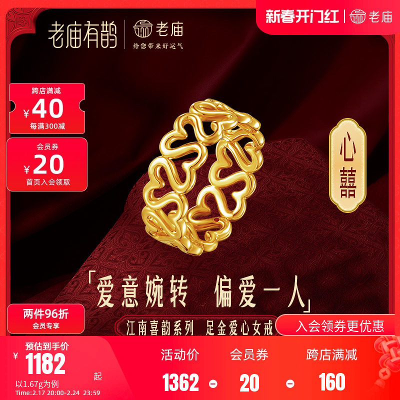 老庙有鹊黄金足金心囍爱心戒指5D心动三部曲三金婚戒(多退少补)