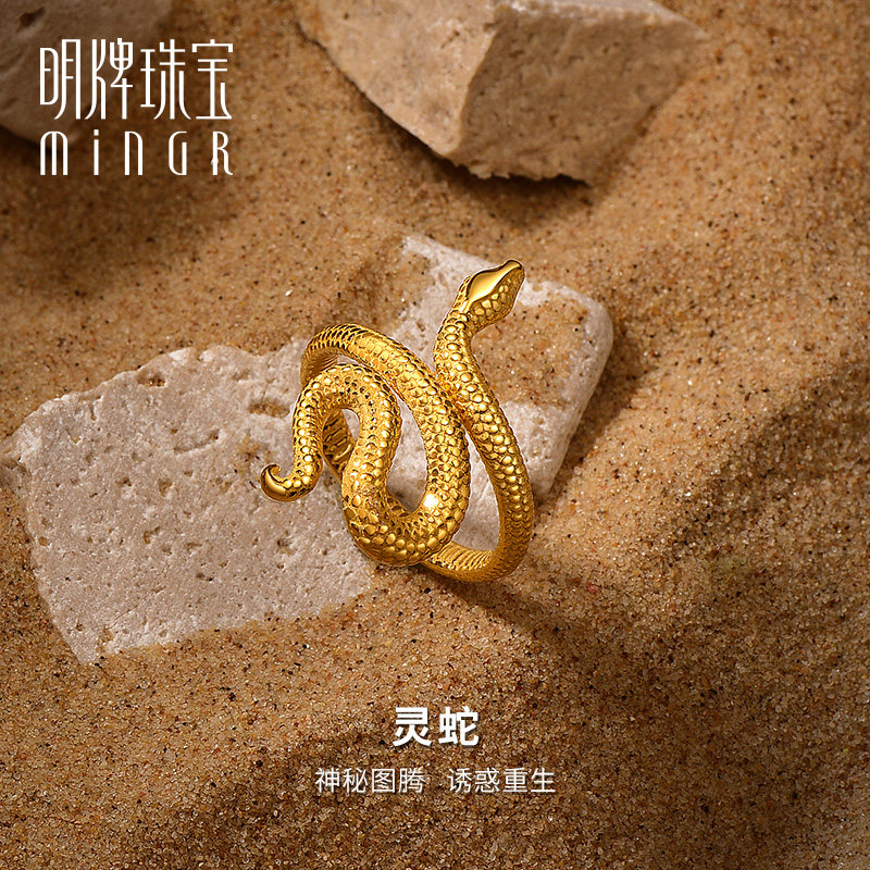 明牌珠宝黄金灵蛇系列戒指 足金沙漠蛇图腾生肖蛇女士对戒AFM0176