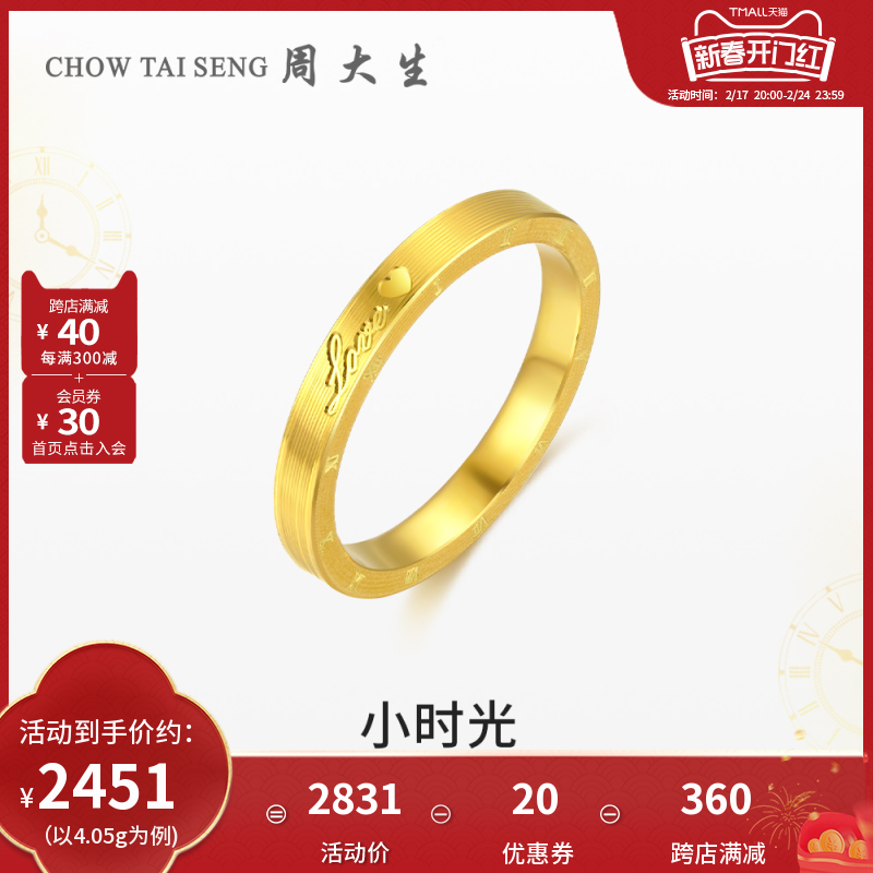 周大生黄金戒指女足金小时光男女对戒情侣结婚婚戒生日礼物女友