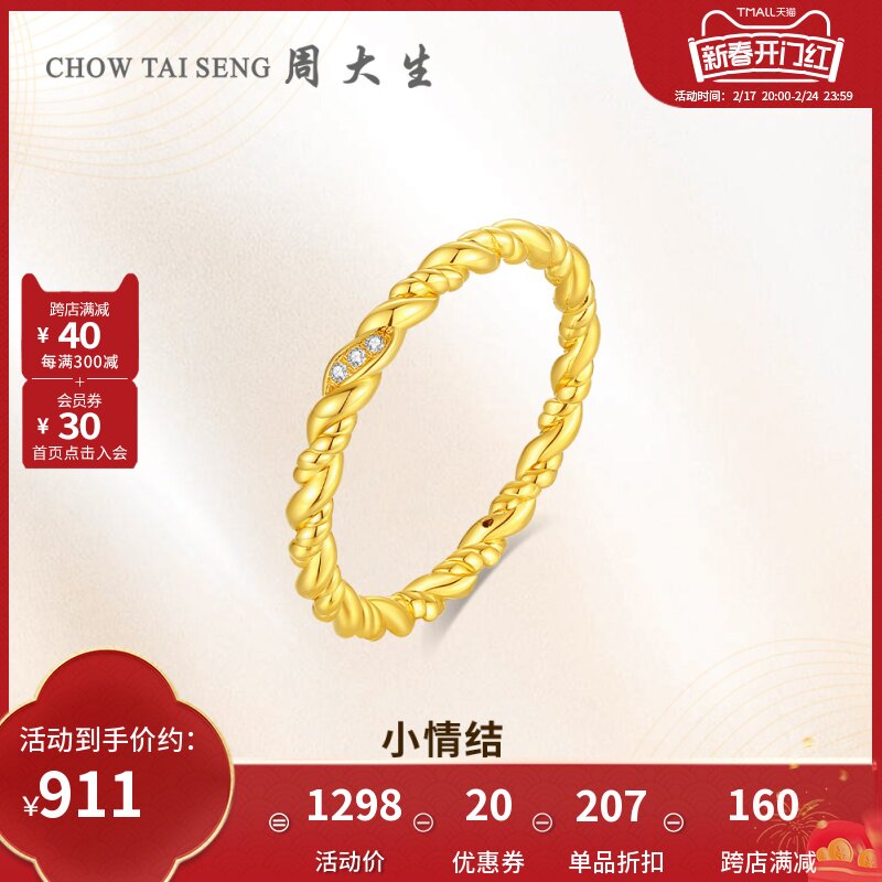 周大生小情结黄金钻戒女5D足金钻石戒指麻花戒臂节日礼物送女生