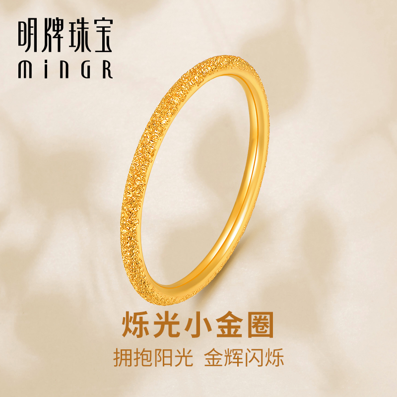 明牌珠宝黄金实心戒指 足金烁光小金圈简约叠戴呆口女士戒AFM0258